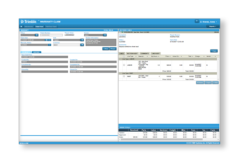 The TMT Warranty Module enables you to create individual or base Claims Pricing Tables for every supplying vendor, which provides the ability to define what is reimbursable based on part or component costs, labor rates, minimum hour charges, outside vendor repairs and any other possible fees or taxes that could be incurred to support a warrantable repair.