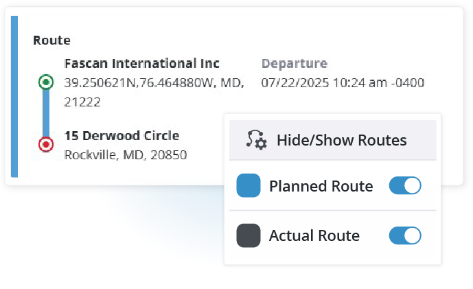 Trip details, maps and route information at a glance, along with HOS break planning and predictive parking to help alleviate driver stress and ensure more efficient trips.
