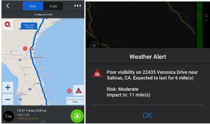 “We believe weather Intelligence with predictive hyperlocal weather alerts will revolutionize how drivers and fleets deal with weather risks on the road. By providing more precise warnings, we can greatly improve safety and prevent accidents,” said Rishi Mehra, sector vice president of Trimble’s commercial mapping and routing technology. “And this service doesn’t just give you a speed reduction alert. It provides proactive engagement that goes beyond current weather apps by offering a level of advisory that redefines the standard.”